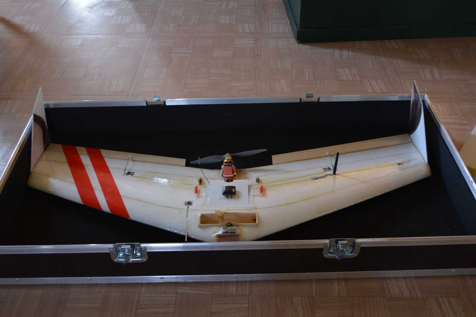 The airframe used was my own development, the Vanguard. It had a payload capacity of approx. 0.5 kg and a range/endurance of 100km/2h. The drone was build to last and was cheap to build with off the shelf components.